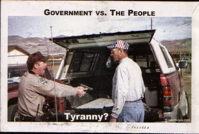 In the elder tradition of the native peoples, all would be responsible for care of the land in a communal sense of ownership. This would have little to with boundaries, fences, grazing private herds and related overgrazing, leases and whatnot. And most certainly would have nothing to do with narcissistic fights over who has the right to exploit the land for personal, private gain or who has the right to tell someone else what they can or cannot do. It was a system of libertarianism where everyone was possessed of a high sense of ethics and self discipline manifesting, above all, in self-restraint. Care for the land itself required understanding this was a resource which was above that of any individual's rights. Whether the ranchers or the feds, both would (have, actually) usurped this aboriginal philosophy, violating principles of ethics, morals and law (with the employ of 'color of law') in the process.