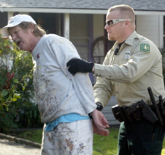 Support Your Local Highway Robber: Brian Gilbert, former Dallas County (Iowa) Sheriff, convicted of stealing $120,000 in "forfeited" money. Is it just me, or does he look a bit like Will Teasle (Brian Dennehy), the "King Sh*t" Washington cop from First Blood (below, right)?That's how things worked for the Sheriff's Department of Dallas County, Iowa, located along Interstate 85, which is perhaps the country's most heavily traveled East-West freeway. Under the direction of former Sheriff Brian Gilbert, the Dallas County Sheriff's Department hauled in millions over the course of several years -- and then Gilbert got a little too greedy, making off with paper sacks containing $120,000 seized in a traffic stop.